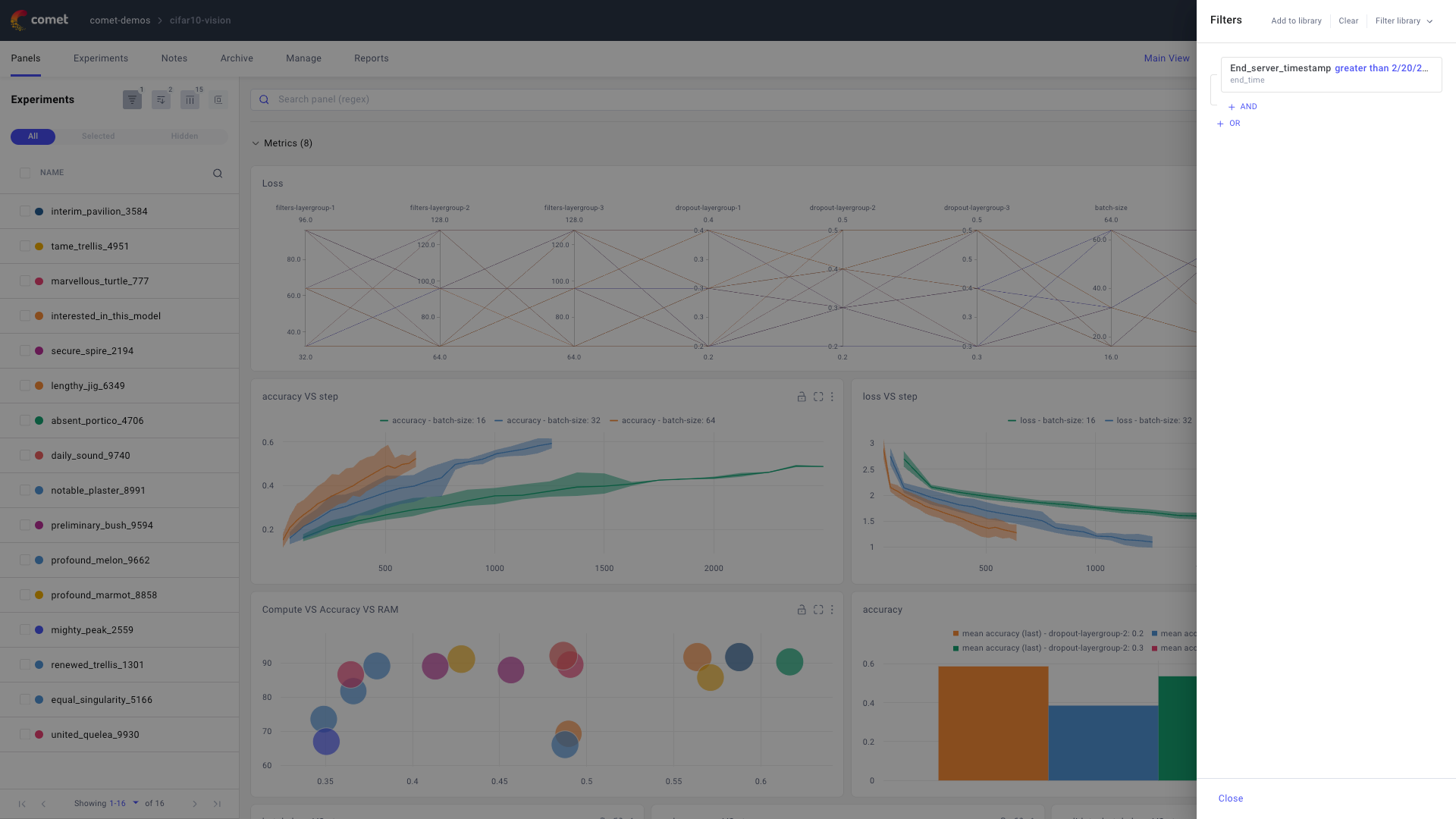 Comet Experiment Management - Filter